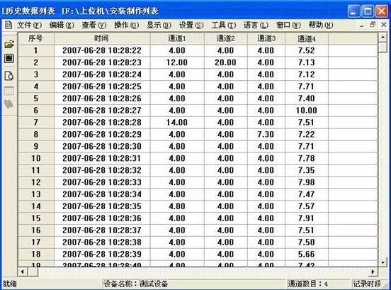 完成記錄儀的各項參數設置,軟件支持聯機狀態下的時時數據和時時曲線顯示,使用軟件可讀取歷史數據