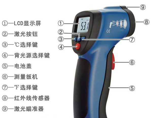 商品名稱:紅外線測(cè)溫儀/測(cè)溫儀/手持式非接觸紅外測(cè)溫儀